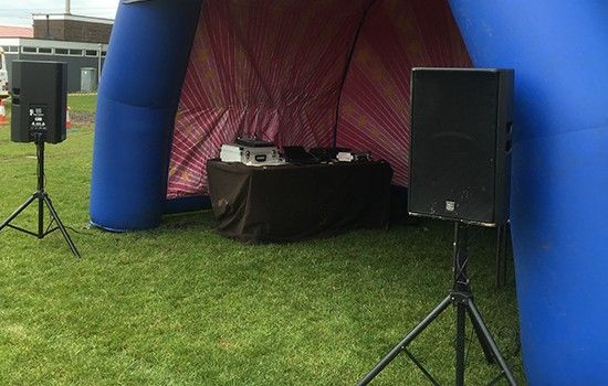 A compact covered stage designed specifically for DJs, comperes and solo performers. With 3m x 4m of usable internal space and a Velcro front panel for easy branding, it provides a tidy, covered setup for outdoor events.